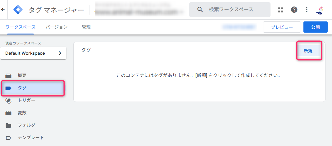サイドバーの「タグ」を選択して、「新規」をクリックします。