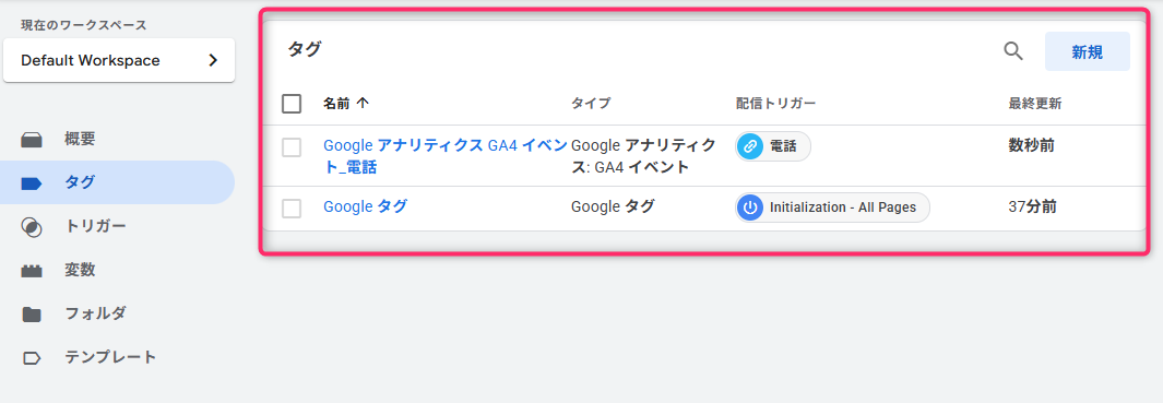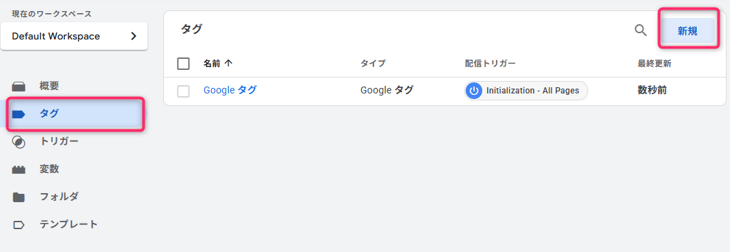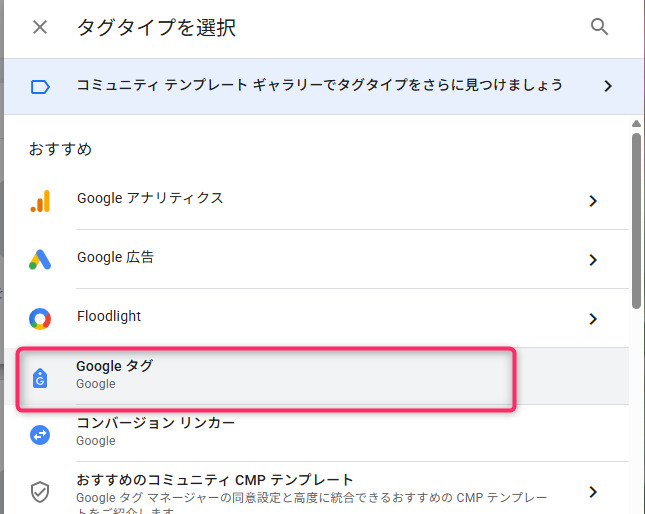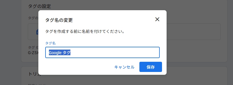 名前は「Googleタグ」のままでOKです(任意で変更)