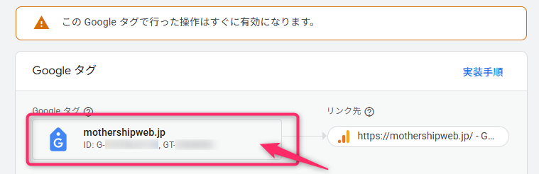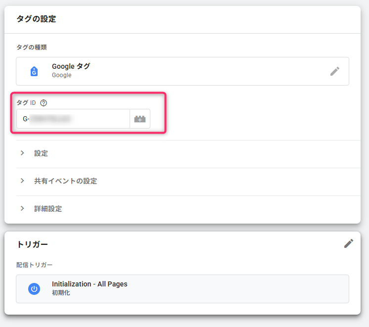 タグIDにアナリティクスで確認した測定IDを貼り付け