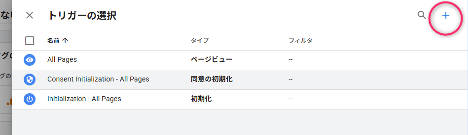 もし入っていなかった場合は、トリガーを選択してこのタグを配信」または右上の鉛筆マークを選択し、「Initialization – All Pages」または「All Pages」を追加しましょう。