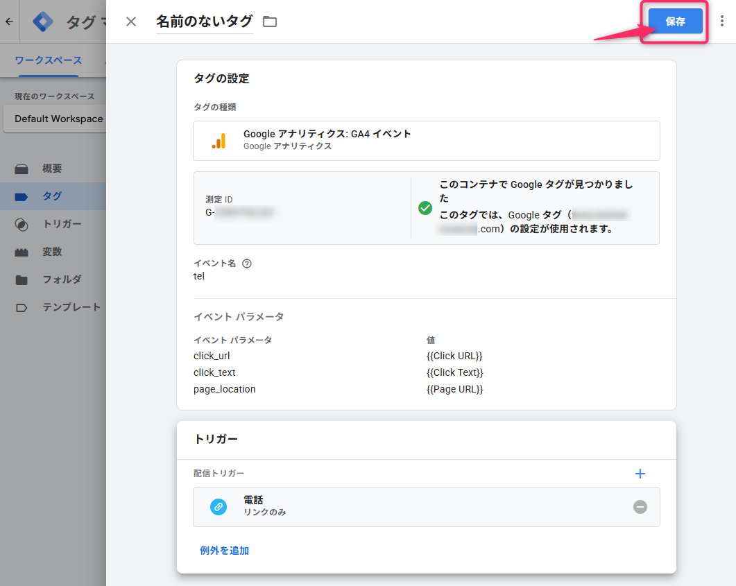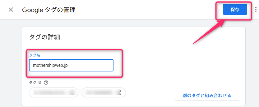 保存を選択後、開いている「Google タグの管理」「Googleタグ」タブは閉じて大丈夫です。