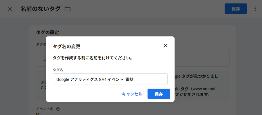 タグ名は「Google アナリティクス GA4 イベント_電話」にしました。
