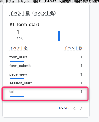 イベント数項目に「tel」※(5)で設定したイベント名が表示されたら成功です!