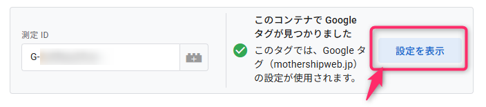 測定ID横の「設定を表示」を選択して、Googleタグ名を設定します。