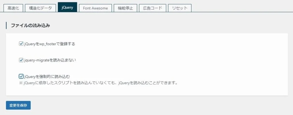 そのため、jQueryをテーマに読み込ませるというのが解決法となります。