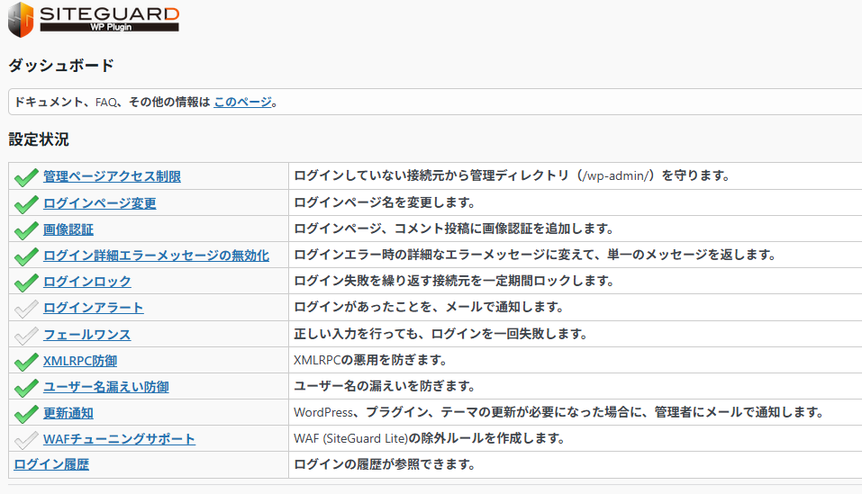 特にご希望がない限り、特に希望がない限りはSiteGuardプラグインを導入しています。このプラグインにより、以下のようなセキュリティ対策を実施できます。